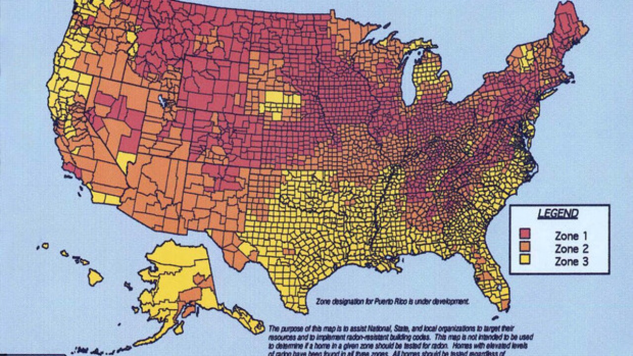 EPA Radon Risk Map for Virginia Radiological Health